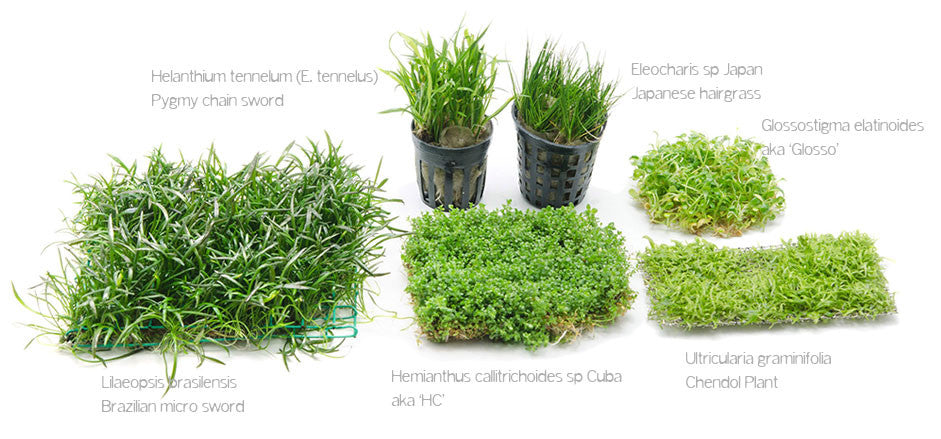 Plants like HC Cuba and Utricularia graminifolia are tiny and should be planted in mini clumps.