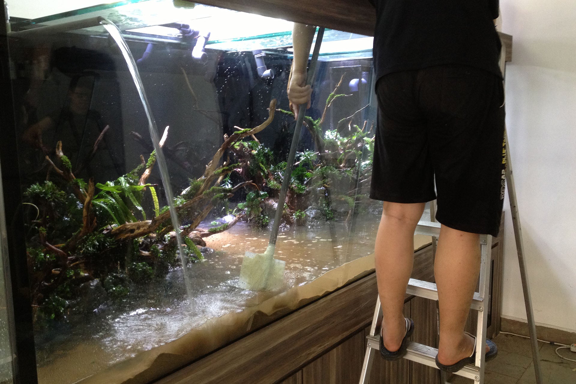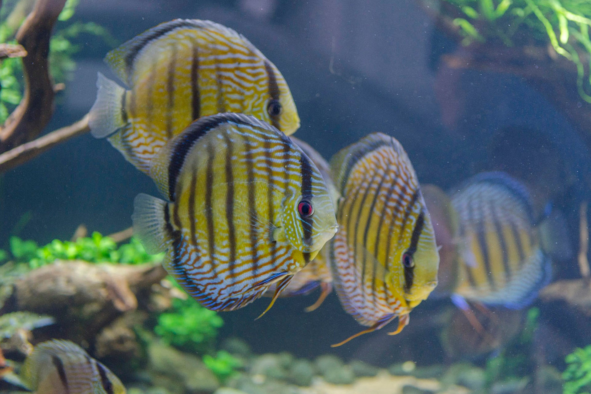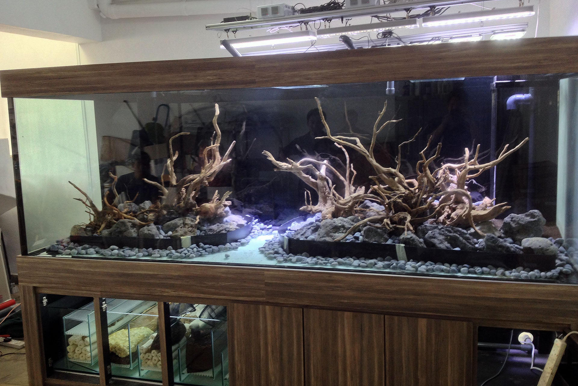 A 3x1x1m Planted tank filled with hardscapes, ferns, anubias, cryptocoryne, tetras and discuses!