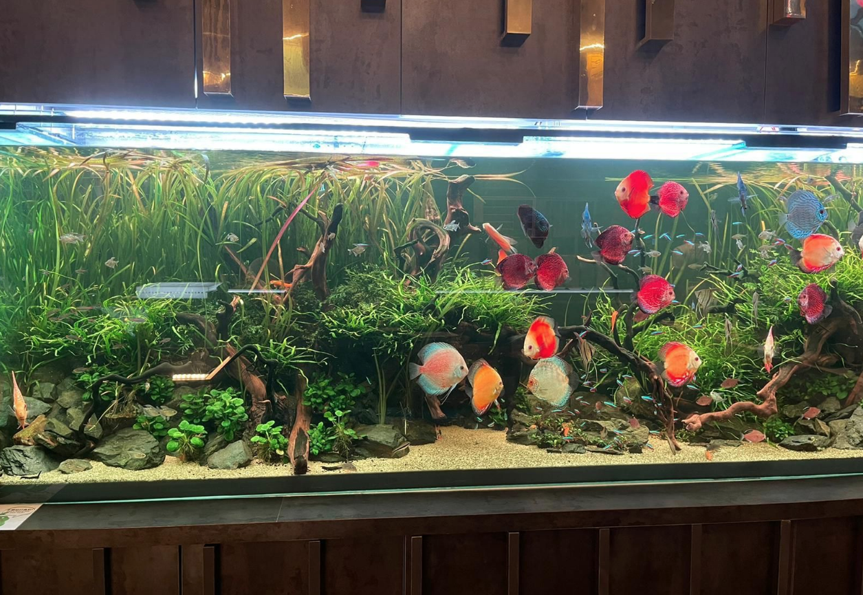 A 7ft Planted aquarium with discus and tetras in the Digital Lock Showroom @ Vertex, Ubi