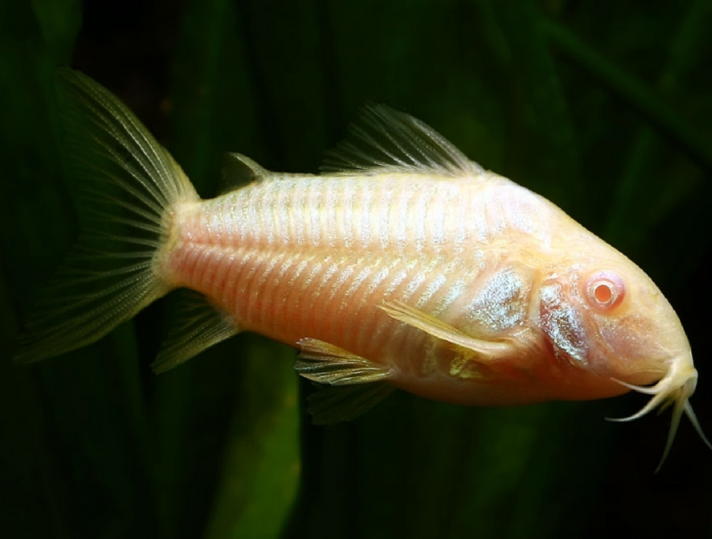 Albino Cories are great fish for the beginning fish keeper. They are hardy little fish that are quite adaptable to varying water conditions. They are active during the day, hustling around scavenging bits of food from the bottom of the aquarium, which helps to keep it clean. They can make sounds with their pectoral fins and use a clicking sound during courtship and for communication.