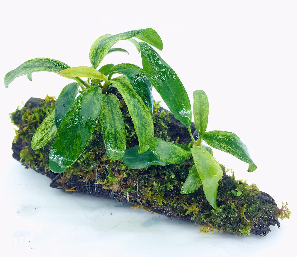Anubias barteri var glabra variegated (On Wood / With Moss)