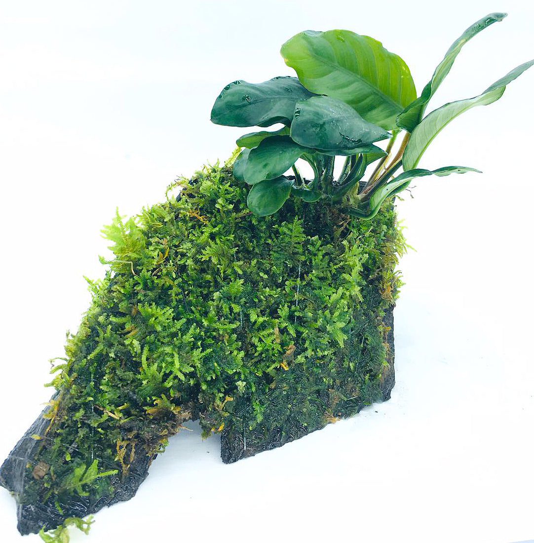 Anubias barteri 'Broad Leaf' (On Wood / With Moss)