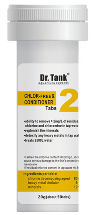 When changing water or adding tap water, put tabs into the tank according the dosage directions as stated in the table. This will help to remove chlorine, chloramine and heavy metals in the tap water. It can destress and help the fish to remain calm. Keep the temperature variation to less than 2deg C during the cycling process.