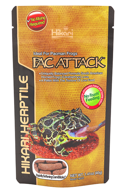 Hikari Pac Attack Pacman Frog Food is a unique balanced daily diet formula specially made to satisfy the needs of the South American Horned Pacman Frog. Each pellet has the texture of live food to encourage healthy feeding behaviors and they come ready to eat with no mixing required.