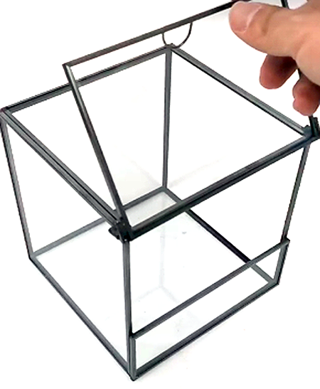 Rectangular/Cube geometric terrarium with a front opening flap door.